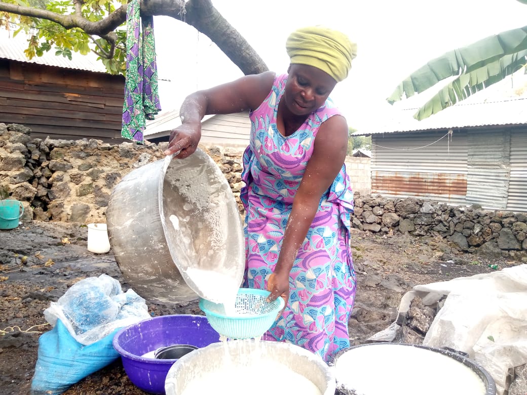 Dans le village de Ngangi 2, situé dans le territoire de Nyiragongo, des initiatives locales transforment peu à peu le quotidien des populations vulnérables. C’est le cas de Madame Kabuo Goreth, veuve et mère de famille, qui grâce à un appui en microcrédit de l’organisation Jirani Msaada, a réussi à relancer son activité de fabrication artisanale de shikwangues de manioc. Son témoignage illustre l’impact concret de ces mécanismes de financement sur la vie des bénéficiaires.